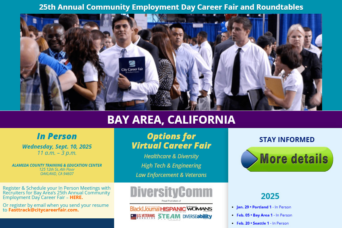 • Meet with major Bay Area employers, their recruiters, staffing managers, and HR Directors who are seeking to hire for hundreds of job and career positions
